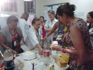 NOSSA FARMACÊUTICA CAMILA, TAMBÉM MOSTRA ABILIDADE CORTANDO O BOLO. HEHEHE.