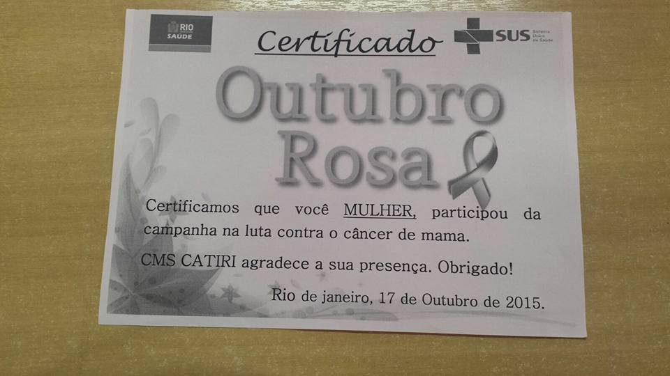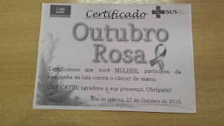 Outubro é o mês do rastreio de câncer de mama e colo do útero e o CMS Catiri abraça esta causa.